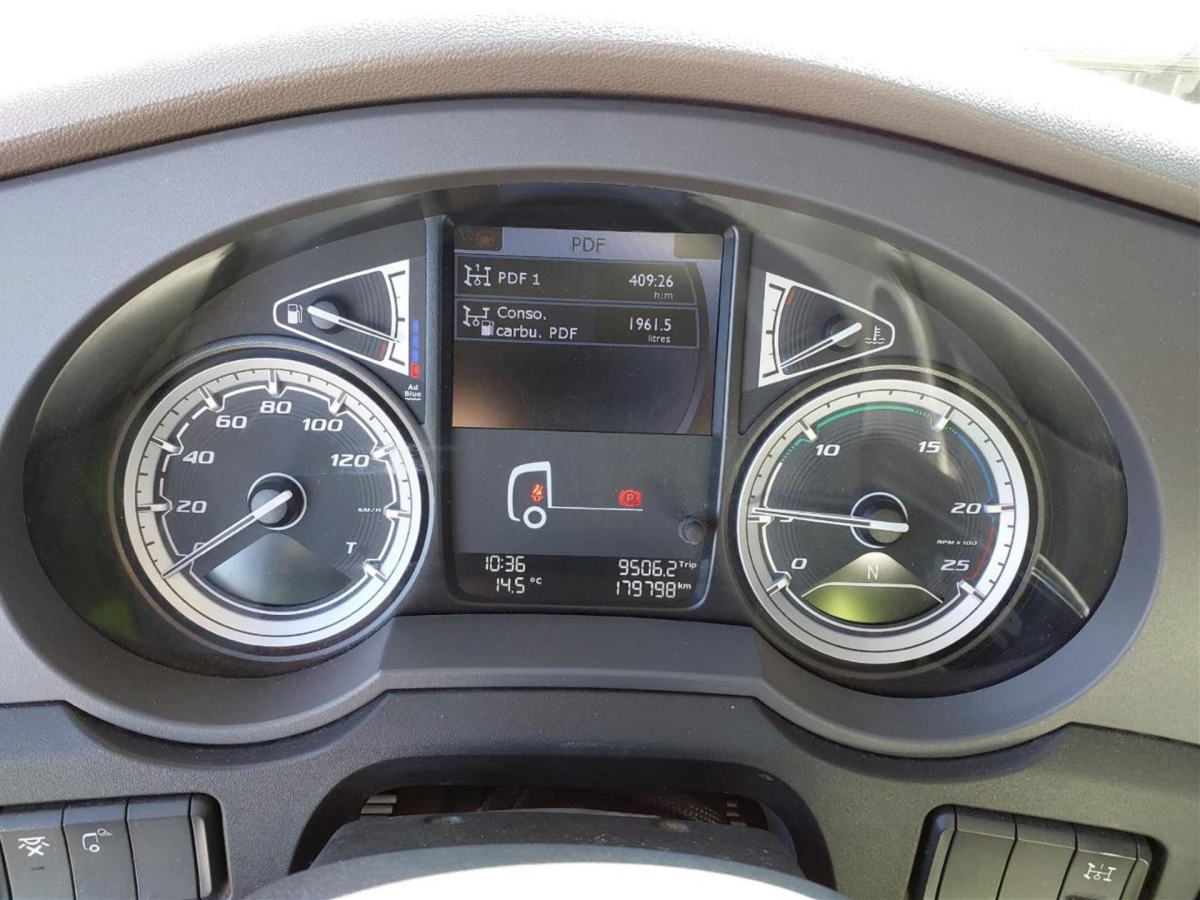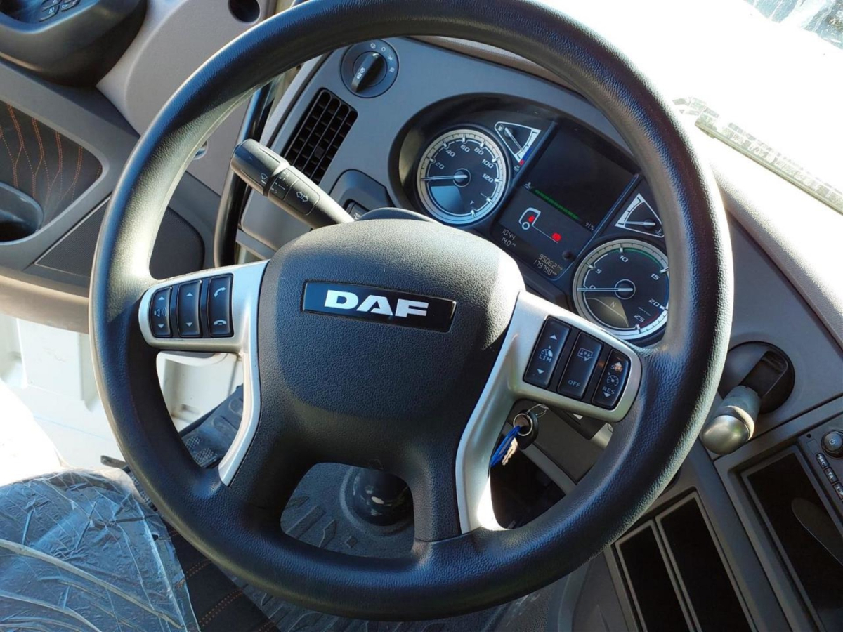 Tracteur XF 480 Space Cab homologué ADR, équipé d'un réservoir aluminium 545 L pour les longues distances. Ralentisseur MX Engine Brake intégré, prise de force (PTO) et siège conducteur Luxury Air. Régulateur de vitesse prédictif (PCC), alerte de franchissement de ligne (LDWS) et réfrigérateur de cabine complètent l'équipement.