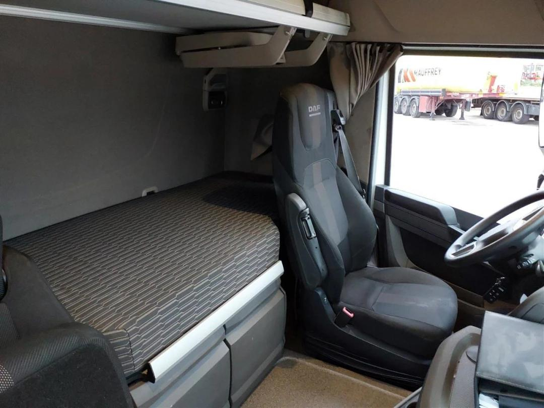 La cabine Sleeper High Cab offre un espace généreux avec réfrigérateur et tiroir, siège conducteur Luxury Air et lit confortable. Les équipements comprennent : frein moteur MX Engine Brake, déflecteur de pavillon ajustable, déflecteurs latéraux, régulateur de vitesse prédictif PCC et système d’alerte de franchissement de ligne (LDWS). Il dispose également d’une prise de force (PTO), du contrôle de charge sur essieux, d’un réservoir aluminium de 545 litres et de jantes acier gris argenté.