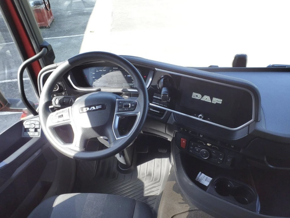 Équipé du frein moteur MX Brake, du régulateur de vitesse prédictif PCC, de l’alerte de franchissement de ligne (LDWS) et de la prise de force (PTO) sur boîte, il combine sécurité et polyvalence. La configuration 4×2 et le double réservoir aluminium de 1050 litres (620 + 430 l) offrent une grande autonomie.